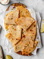- Optional fillings: Feel free to add your favorite fillings like shredded chicken, beans, corn, bell pepper, scrambled eggs, jalapeno, etc. You can also top or serve the quesadillas with sour cream, salsa, guacamole, or cilantro.