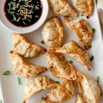 To make this gluten-free, use gluten-free dumplings like these Feel Good Foods Potstickers. For the dip, replace soy sauce with tamari or coconut aminos. Also double check the ingredients in the rice wine vinegar to make sure there isn't any cross-contamination.