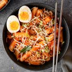 Double check the cook time of your noodles. You want it to be al dente by the time the rice cakes are done cooking. Tteok will take 8-10 minutes to soften in the sauce, so add your noodles accordingly. If using instant ramen, add it at the same time as the tteok.